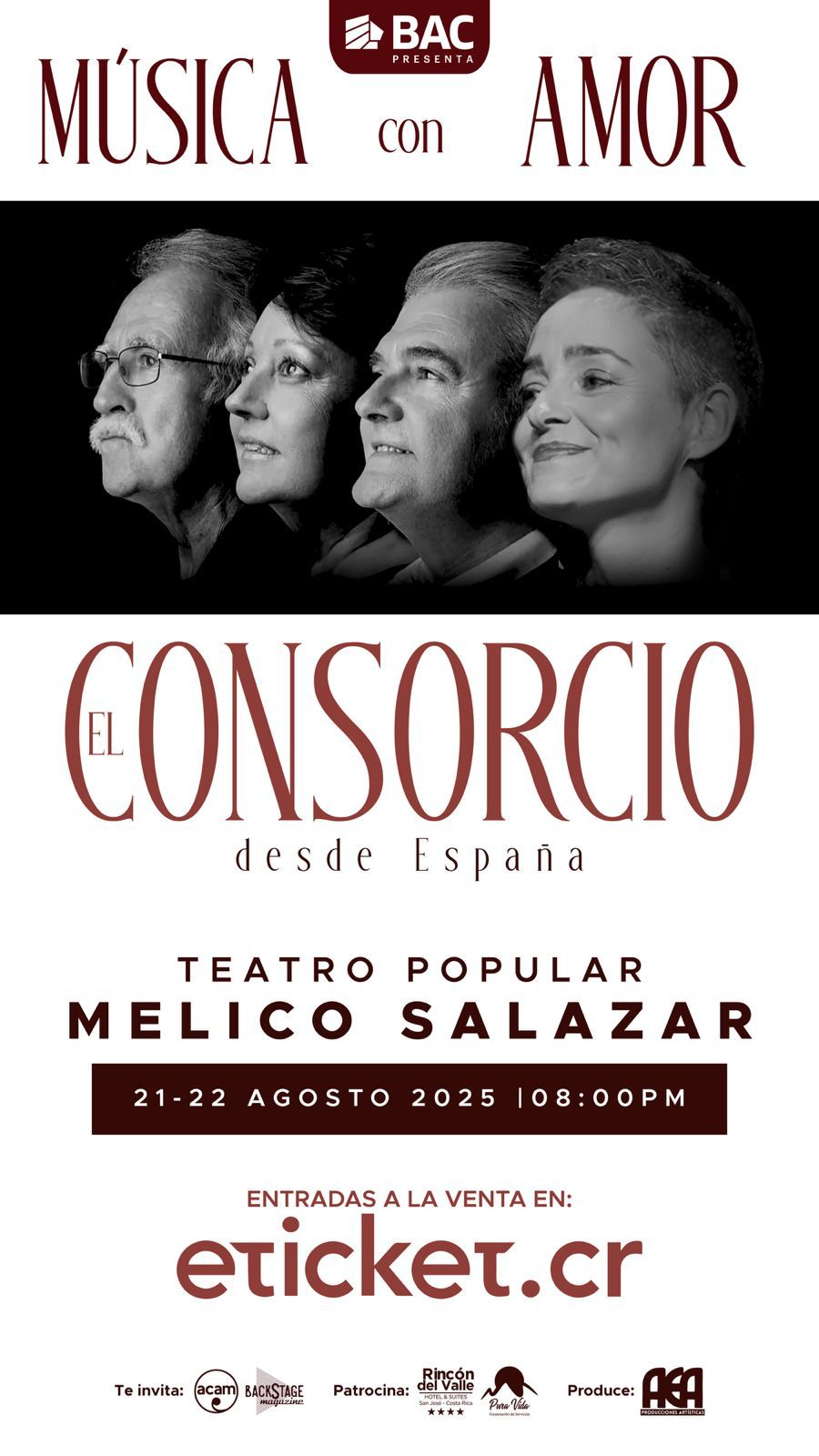 Bajo el sello de Música con amor y para festejar el día de la madre, desde España El Consorcio ofrecerá dos conciertos en nuestro país, los días 21 y 22 de agosto en el Teatro Popular Melico Salazar a las 08:00 pm.