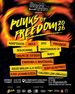 La cita es este domingo 11 de enero en el Mercadito Casa Félix, en la California, Punks of Freedom 2026, reúne a bandas del punk costarricense, en una jornada cargada de música, energía y resistencia cultural.