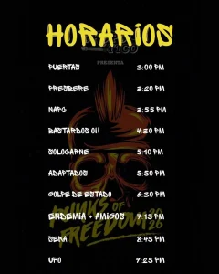 Como parte de El Chopo Tico, el cartel lo conforman las bandas Adaptados, Seka, UFO, Presbere, Solocarne, Bastardos Oi, Golpe de Estado y NAPC, representantes clave del punk, ska punk y el O!